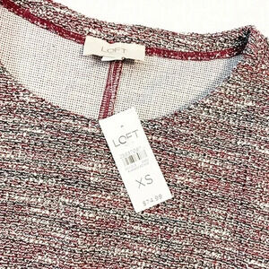LOFT Red Shimmer Tweed Short Sleeve Shift Dress