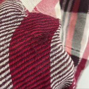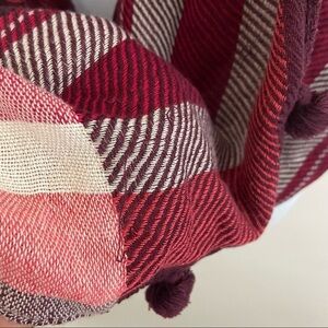 LOFT Red White Plaid Pom Pom Infinity Scarf