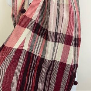 LOFT Red White Plaid Pom Pom Infinity Wrap Scarf