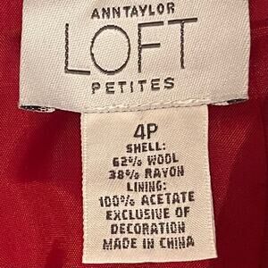 LOFT Red With Black Embroidered Floral Wool Blend CottageCore Skirt NWOT Size 4P