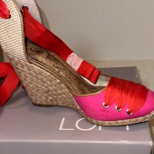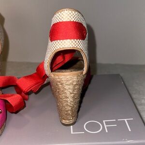 LOFT Red and Pink Espadrille Wedges