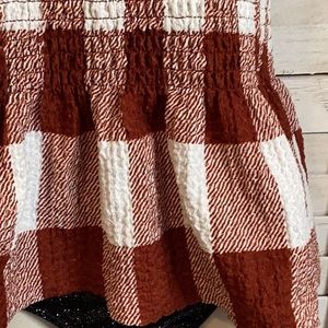 Stylish checkered tank top. Features red and white pattern. Perfect for casual wear. Purchased for my daughter, she didn’t like 🫤This CUTE top has never been worn on this end. I just recently purchased on P/M. The red color is between a burgundy & rust?? It DOES NOT affect the CUTENESS!🥰