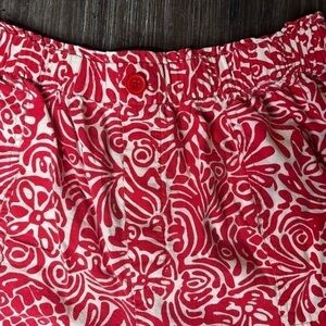 These high waist linen blend shorts from LOFT feature a vibrant red and white pattern, perfect for adding a pop of color to your summer wardrobe. Made from lightweight fabric, they offer a relaxed fit ideal for casual outings. The intricate design ensures you stand out in any setting.