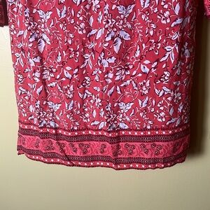 This relaxed bolo ,tunic top from LOFT features a vibrant red and white color palette, complemented by a mandarin collar and buttoned front. The tunic style offers a comfortable fit, making it a versatile addition to any wardrobe.
