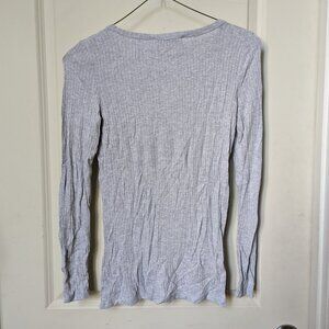 Anne Taylor LOFT Ribbed Button Cuff Long Sleeve Tee. Light grey (Grey Frost Heather) with 3 brown buttons on sleeve cuffs. Never worn but a bit wrinkled from storage.
