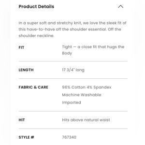 NWOT, never worn, perfect condition. Size M, true to size. Super stretchy ribbed cotton spandex blend. Fits like a cropped bodysuit.