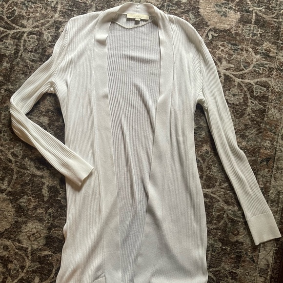 Stylish LOFT white open-front ribbed cardigan. Perfect for layering.