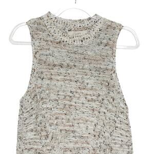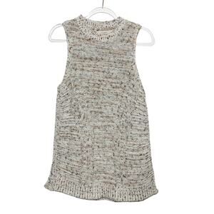 LOFT Ribbed Sleeveless Sweater Crewneck Relaxed Fit Cable Knit Cream Size Medium
