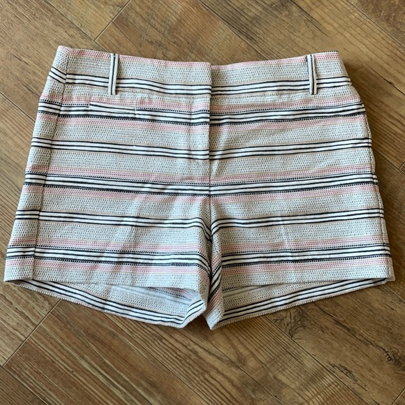 Super cute tan, pink, black & white striped shorts!
