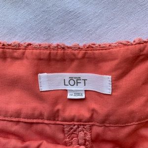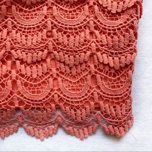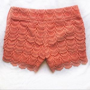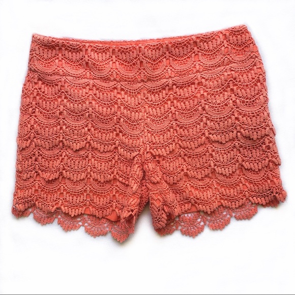 Coral shorts in layered lace; side zip with hook and eye closer and fully lined. In great condition with no flaws.