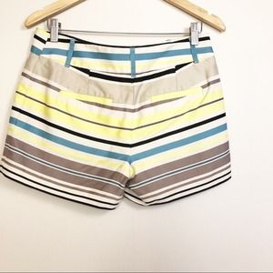 LOFT The Riviera Short. Multi striped with yellow, blue, brown and white stripes. Hidden closure button. Faux pockets.