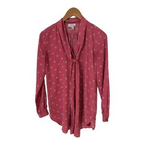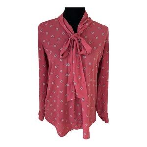 LOFT Rose Pink Dot Tie Neck Bow Tunic Blouse Top XS Oversized Fits Small