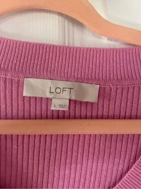 LOFT Rose Pink Ribbed Rounded V-Neck Sweater