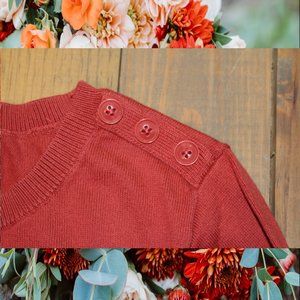 LOFT lightweight rose pink sweater, size medium. Adorable button details on shoulders. Approx. measurements: 23.5” length / 24” sleeve / 18” armpit to armpit