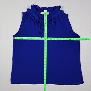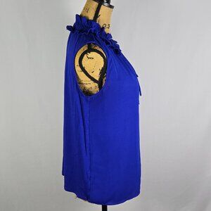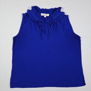 LOFT Royal Blue Ruffle Tie Neck Sleeveless Blouse Romantic Feminine Sz M