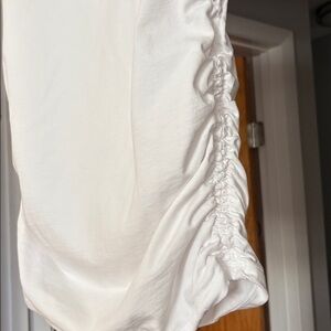 White crew neck ruched tank top. Ideal for versatile styling. NWOT. Size large but fits more like a medium.