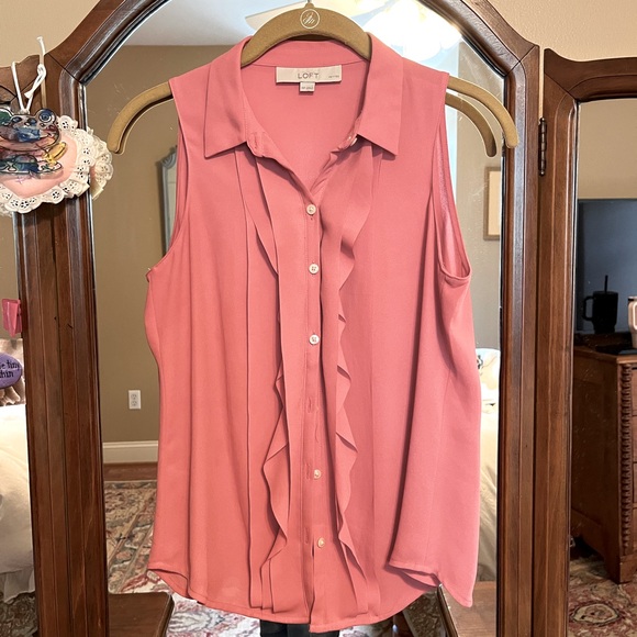 The prettiest warm-toned pink/coral button down tank from Loft. EUC. Lightweight material, perfect for the office on hot Summer days. Can be worn as a shell with a blazer or cardigan in the Spring.