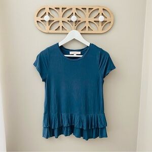 LOFT Ruffle Hem Tee Shirt Blue Sz Small