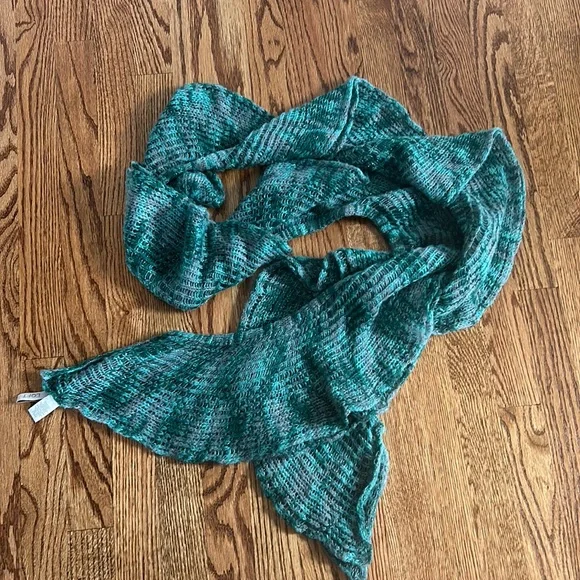 LOFT ruffle knit scarf, pretty blue green with some sparkle thread throughout