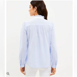 NWT ruffle shirt from LOFT, color is listed as pale lavender luster, but leans toward pale blue