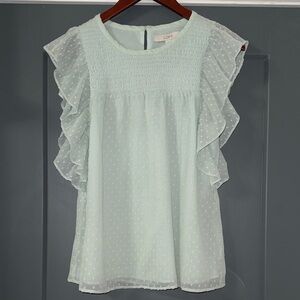 Chic mint green blouse with ruffle sleeves. Ideal for casual or dressy looks. Smoke free home No rips, stains, or tears