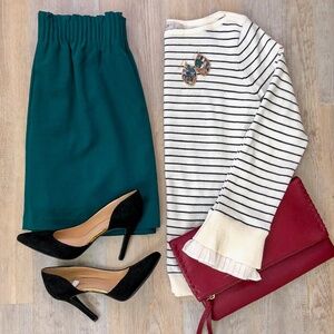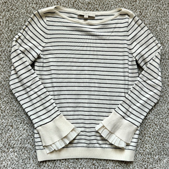 LOFT Ruffled Cuff Striped Sweater