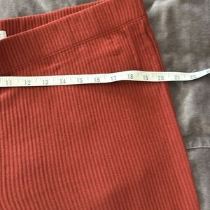 Chic rust ribbed knitwear. Ideal for versatile styling. No pockets😞 but super soft I’m 5’2 and are a perfect length on me just way to big for me anymore.