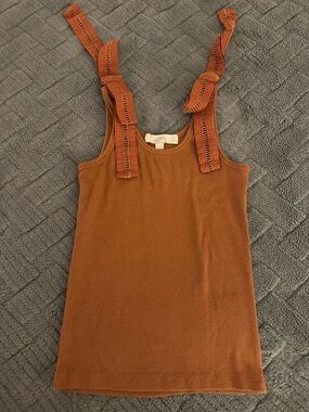 LOFT Rust Tie-Strap Ribbed Tank Top