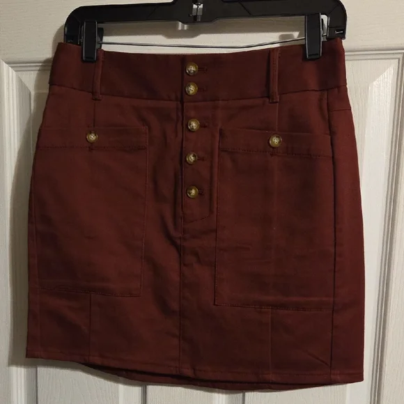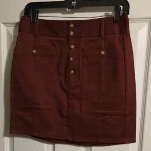 LOFT Rust-Brown Button-Front Mini Skirt