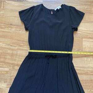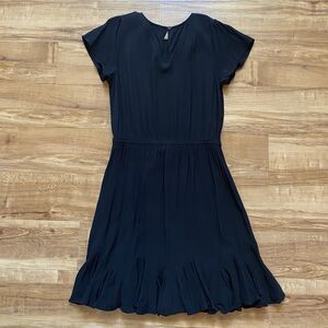 LOFT S Black Godet Flounce Drawstring Waist Ruffle Viscose Blouson Swing Dress Whimsigoth