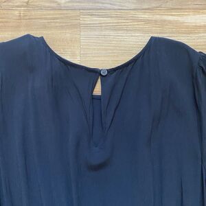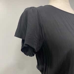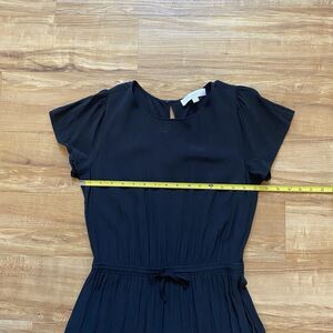 LOFT S Black Godet Flounce Ruffle Viscose Blouson Pleated Swing Dress Whimsigoth