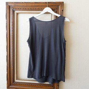 LOFT SLEEVELESS RUFFLE TIE GRAY TOP BLOUSE SZ M