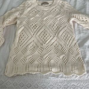 LOFT SMALL cream sweater Pointelle Knit Wool Blend white open knit long sleeve