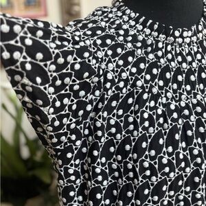 LOFT SMOCKED YOKE FLUTTER SLEEVES BLACK & WHITE EYELET EMBROIDERED DRESS SZ MP