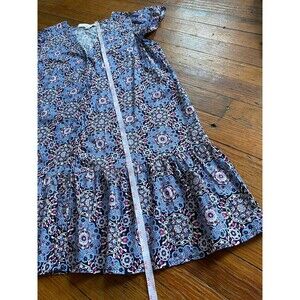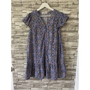 LOFT SP Dress Medallion Button Front Flutter Sleeve Blue Mandala Flounce V Neck