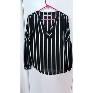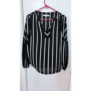 LOFT SPLIT NECK TUNIC BLCK BEIGE TAN STRIPE BLOUSE WOMENS SIZE XS
