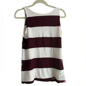 Pre owned excellent condition. Worn a handful of times. Really cute deep purple and white striped sequin tank. WOMENS size small.