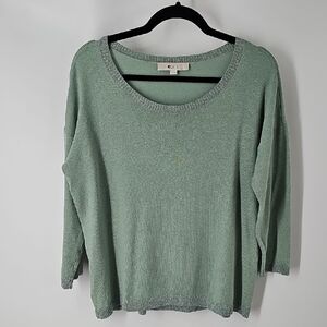 LOFT Sage Green w Glitter Trim Lightweight Sweater