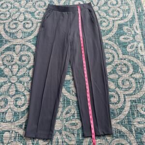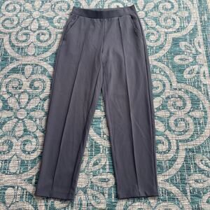 LOFT Versa Seasonless Stretch Double Pleat Taper Pants in Heather pants are a must-have for your wardrobe. Crafted from a soft, in a gray color, they feature a convenient pull-on style with a comfortable elastic waistband. The slim, tapered leg design and ankle length offer a modern and flattering fit. These versatile pants are perfect for a casual day, a business-casual office setting, or a cozy weekend outing.