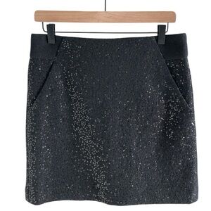 LOFT Sequin Tweed Mini Skirt Wool Blend Pocket Black Sz Sm