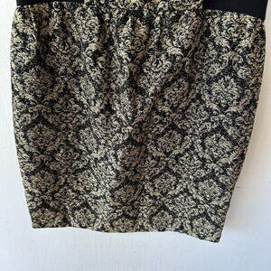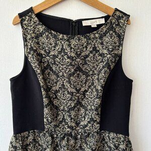 LOFT Sheath Dress Womens Size 6 Gold Black Rear Zip LBD Tapestry