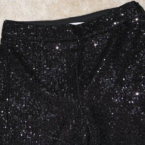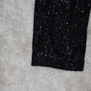 Stylish black pants with shimmering sequins. Cropped ankle design. Ideal for a night out.