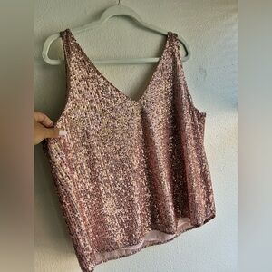 Dazzle in this shimmering sequin camisole. Perfect for evening elegance. Pair with your favorite bottoms for a chic look. New without tags. Shoulder to hem measurement in photo