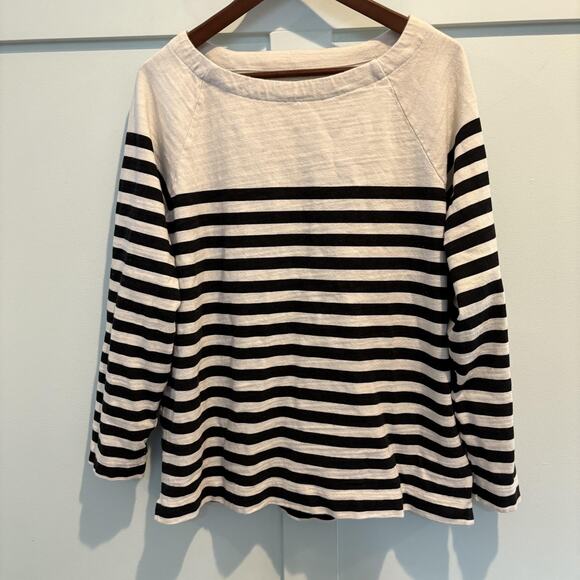 LOFT Shirt Women Large Black Cream Boatneck Breton Stripe Capsule Classic Raglan