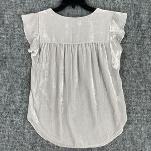 LOFT Shirt Womens S Gray Metallic Blouse Top Velvet Flutter Sleeve Chic Formal