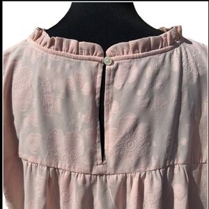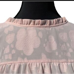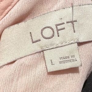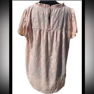 LOFT Shirt Womens Size Large Pink Floral Blouse Cap Sleeve Flowy Ruffle