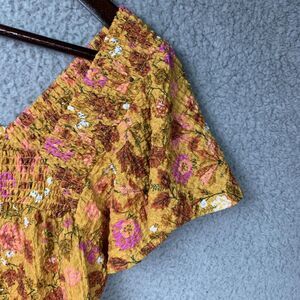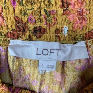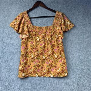 LOFT Shirt Womens Small Yellow Floral Smocked Square Neck Flutter Sleeve Boho