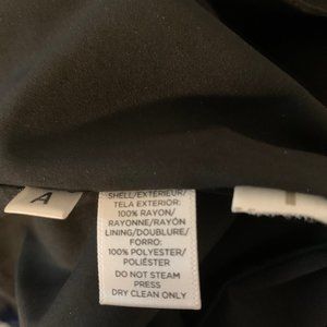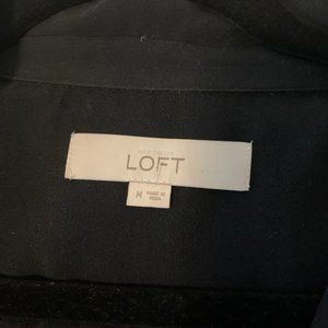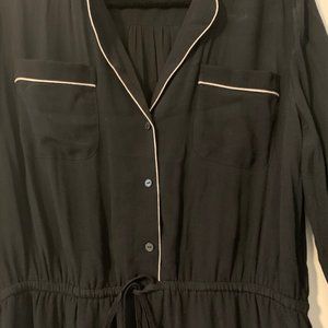 Gently worn LOFT shirtdress in black with white trim. The waist has a drawstring tie so you decide how it fits. There are 3 buttons on the top closing it in front. The skirt part is lined. A great versatile dress, dress it up or down. From a smoke and pet free home.