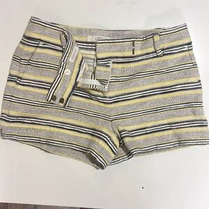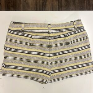 LOFT Shorts Womens Sz 4 Yellow Stripe Tweed Flat Front Darted Pockets