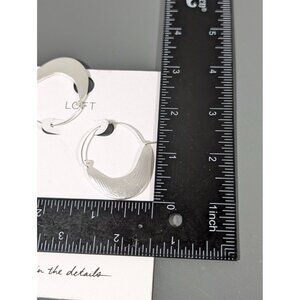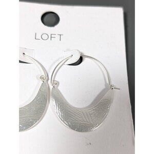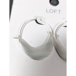 LOFT Silver Tone Textured Boho Curved Bar Hoop Earrings Pierced NEW